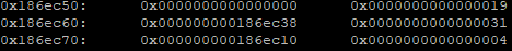 우선 free를 해서 메모리가 어떻게 변경되는지 살펴보자. free를 한 이후에 0x186ec50 부분을 확인하면 다음과 같다.